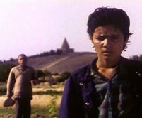 Mehrollah makes a long trip by bus and arrives at his village. He halts to freshen up at a stream nearby and in the process loses the photograph. He notices his friend Latif (Hossein Abedini, who will go on to become the protagonist of Majidi’s spectacular Baran (2001)), and plays a childish prank on him. Immediately following that, Latif informs Mehrollah that after he had gone to the city following his father’s death, his mother had married a policeman. Mehrollah is infuriated and hits Latif, indicating his straddling between the playfulness of childhood and the fits of adolescent anger.