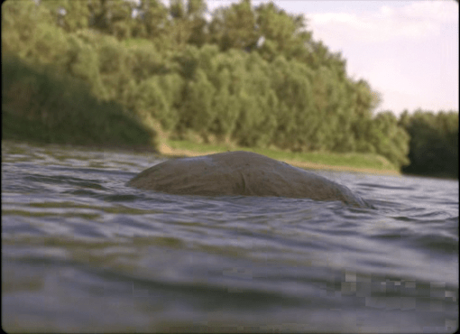 There’s Saul, yet again, alone with “his son” on the shoulder. His nightmare—and ours—hence continues. Saul jumps into the river, following the other fugitives. He doesn’t know to swim, or is at the verge of total exhaustion. Despite himself, he releases his package, his treasure. The package floats away with the current, almost drowning (fig. 11). Faced with this image, we suddenly think of an atrocious, inverted version of the foundational narrative of Jewish history, the story of Moses: a dead child that drowns in place of a living child saved from the river; real, historic death of an entire people in place of the biblical, mythical birth of the same people. The child disappears in the water. Saul himself is drowning. He’ll be saved at the last moment by the “first rabbi”—like how he himself had saved the “second rabbi” from drowning in the Vistula—and this is the only moment in this story where a rabbi performs his little miracle.