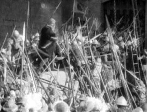 The film is worthy for the sequence showing the Siege of Orléans, the best battle scene shot by DeMille: a beautiful, chaotic and inventive wave of soldiers in action, with multiple arms under the fortifications, on the rampart walls and in the city. Carmen, in contrast, is interesting only for a brief sequence realistically showing the work of cigarette makers and was rightly sent up in [Chaplin’s] Burlesque on Carmen.