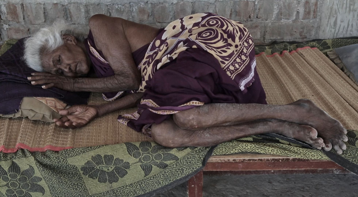 At the centre of the film is an elderly couple in rural Tamil Nadu. Both husband (Arumugam) and wife (Sundharathamal) are bedridden and live separately under the care of different children and relatives. Karparaa doesn’t elucidate their relations; instead, it presents vignettes from their everyday life seemingly gathered over a year. We see their guardians attend to them reluctantly: grandsons who wash them like cattle, daughters-in-law who are weary of cooking for them, young ones who would rather be busy with their smartphones on lazy afternoons than take them to the toilet.