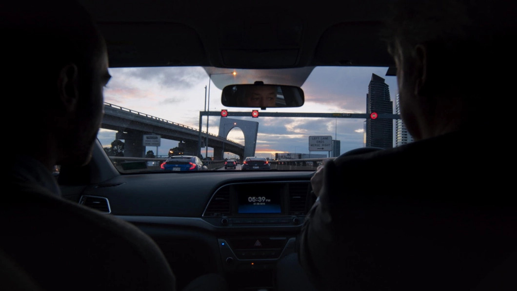 The Plains channels the spirit of Jeanne Dielman into Andrew Rakowski, a middle-aged lawyer who leaves office every evening just past 5 P.M. to drive home to suburban Melbourne. Easteal’s cyclical road movie formalizes this routine, filming Andrew’s commute over eleven different days of the year with a fixed camera from the back seat of his car. On some days, Andrew offers a lift to his colleague David (Easteal himself), probing the reticent young man on his private life while also generously talking about his own: relatives, career, romance, wealth, mental health. Literally compartmentalizing work and life, the commute creates a transitional zone where Andrew can view each as an escape from the grind of the other. It provides a moment of unwinding, freedom from roleplay that both life and work demand. Yet, for all the me-time the drive home affords, there is an eerie silence whenever Andrew isn’t chatting away or the radio isn’t on, as though this non-place, non-time were forcing him to reflect on Important Things. Despite the apparent sameness, every day brings small deviations that threaten Andrew’s reassuring routine, all accumulating into a powerful meditation on aging and the passing of time, a view of life’s parade from the wheel of his car.