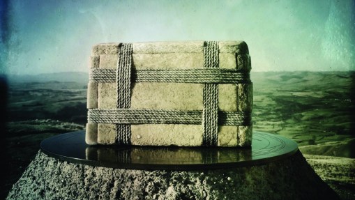 For those who have seen any of Kötting’s work, the confounding associations of The Whalebone Box shouldn’t come as a total curveball. The sixty-year-old Kötting makes playful experimental films featuring friends and family that work off English folklore and geography. A frequent protagonist is his daughter Eden, an artist herself, who was born with Joubert Syndrome. Eden is both the narrator and the inspiration for this new film. Two dominant narrative strands emerge from the audiovisual thicket of The Whalebone Box. In the first, we see Eden dressed as a May Queen, seated in a forest on a fauteuil holding a hunting rifle and peering through binoculars. She is admittedly looking for a whale to hunt down. We also see her at a museum and, more frequently, in bed. Subtitles express her thoughts and dreams, which are about a box made of whalebone, an artefact she recreates in cardboard. The second narrative strand is actually about the legendary whalebone box, which was reportedly created by sculptor Steve Dilworth on the Scottish island of Harris thirty years ago. The island, we are told, is now afflicted with an unknown epidemic and the box might hold a cure. So Kötting, the writer Iain Sinclair and the photographer Anonymous Bosch set out with the box on a journey from London to the north. They stop at places of mythological import to “charge the box” with curative energy. Several shots of the film show the box on the dashboard of the group’s car or Sinclair lugging it around the English landscape. Interspersed with this journey is monochrome clips of children playing and recreating pagan myths.