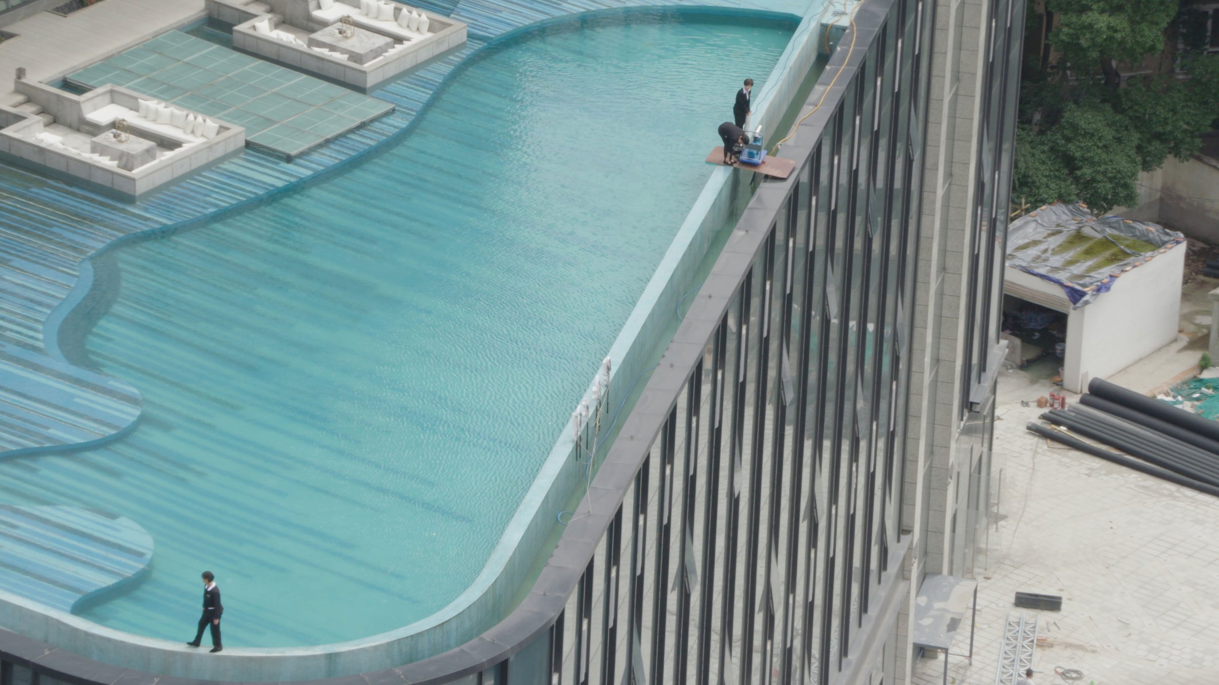 As the man in the café muses on what love is, Mielgo cuts to vignettes of unfulfilled romance: a young pair at a sunny beach staring at the sea in silence, a homeless man talking with a mannequin as though she were his old flame, a Japanese schoolgirl jumping off a high-rise in Tokyo, a man with a bouquet of roses in Berlin rushing for a planned date, two tattooed Tinder hopefuls in a supermarket who don’t realize that their match is standing next to them. At first, these scenes feel like the man’s reminiscences, but it turns out that they are just unconnected scenes connected by the theme of love and given the music video treatment.